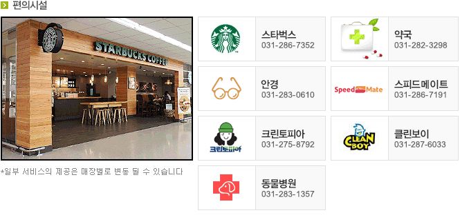 이마트 트레이더스 구성점 편의시설은 : ATM, 푸드코트, 스타벅스, 안경점, 약국, 크린토피아, 스피드메이트, 클린보이, 동물병원이 함께 입점하여 있습니다.