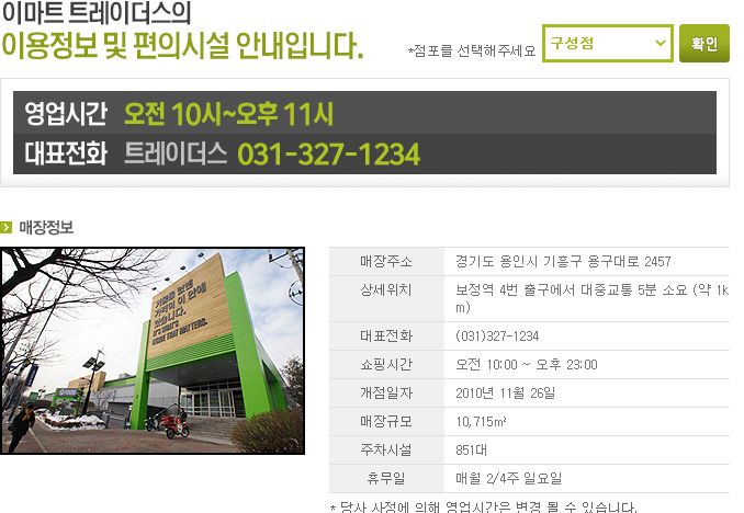 이마트 트레이더스 구성점 휴무일, 영업시간