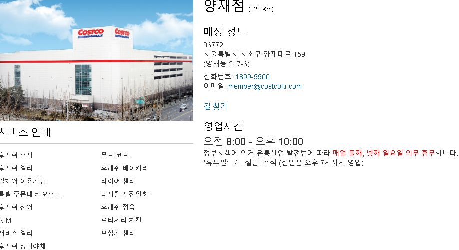 코스트코 양재점 서비스 안내 입니다.