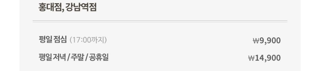 피자몰 가격 홍대점 강남역점은 평일 9,900원, 평일저녁 및 주말, 공휴일 가격은 14,900원 입니다.