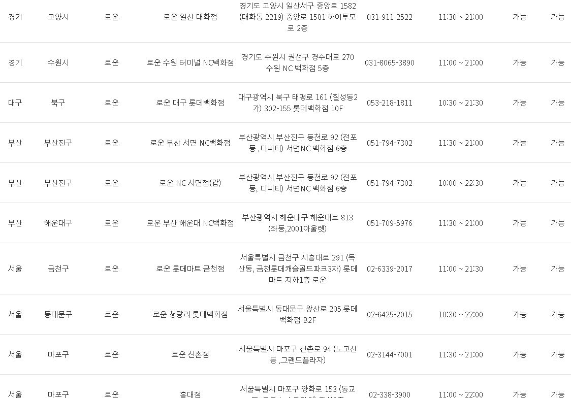 생각보다 로운 샤브샤브 매장이 별로 없네요? 로운 샤브샤브 매장 알아볼게요. 로운 일산 대화점, 수원 터미널 NC 백화점, 대구 롯데백화점, 서면 NC백화점, NC서면점, 해운대 NC 백화점, 롯데마트 금천점, 청량리 롯데백화점, 신촌점, 홍대점, 강남 뉴코아 아룰렛점, 잠실 롯데 웰빙센터점 입니다.