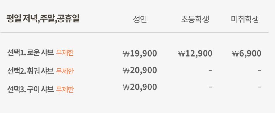로운 샤브샤브 가격 주말은 성인 19,900원이며, 훠궈샤브, 구이 샤브 무제한으로 즐기는 로운 샤브샤브 가격은 20,900원 입니다.