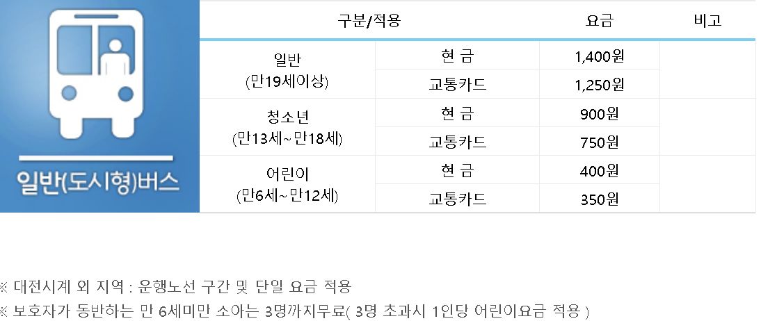 대전 시내버스를 이용하시는분들에게 도움이 되고자, 대전 시내버스 요금, 환승할인 요금표 정보 찾아 보았습니다.