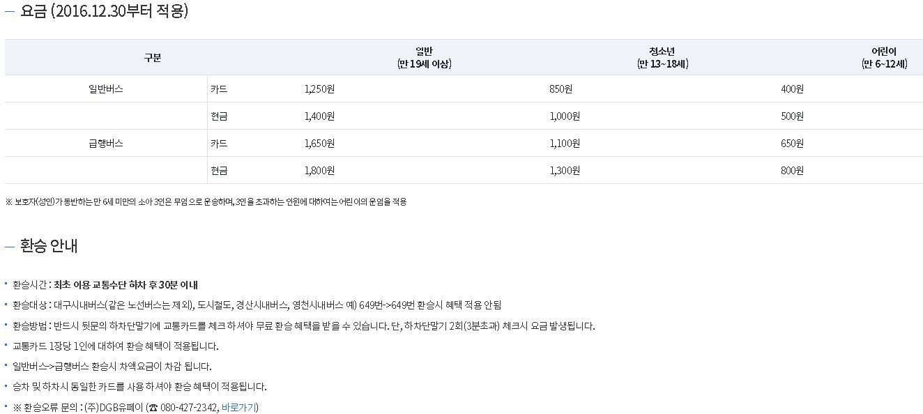대구 시내버스 요금