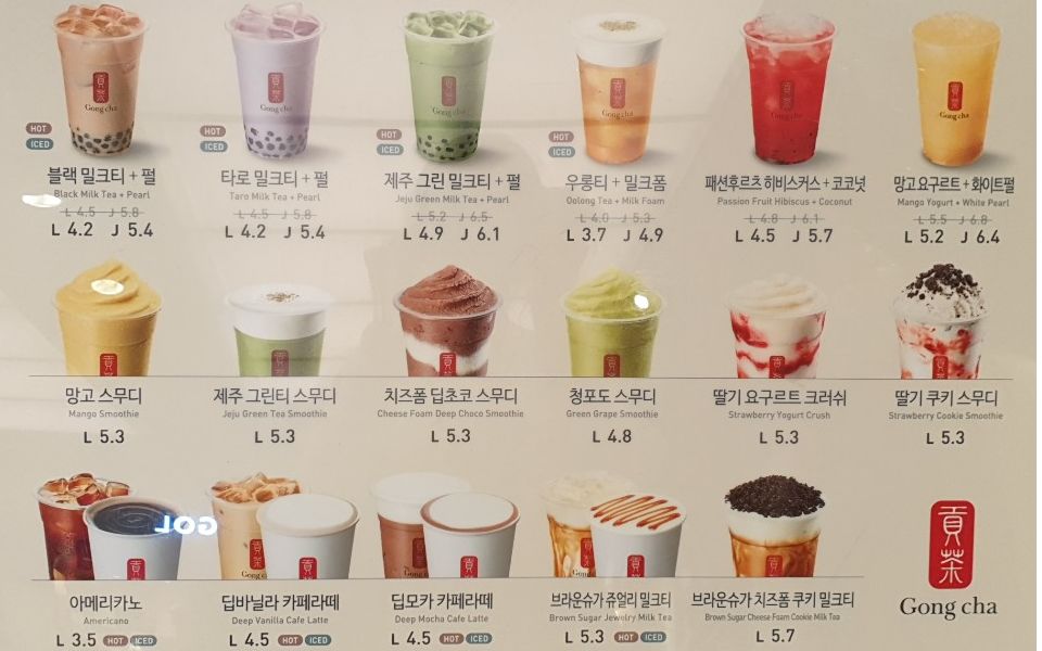 공차 밀크티 가격은 사이즈에 따라 상이하며, 공차 메뉴 가격 사이즈는 L 사이즈와, 점보 사이즈 J 사이즈가 있습니다. 일부 메뉴는 L 사이즈 하나밖에 없습니다.