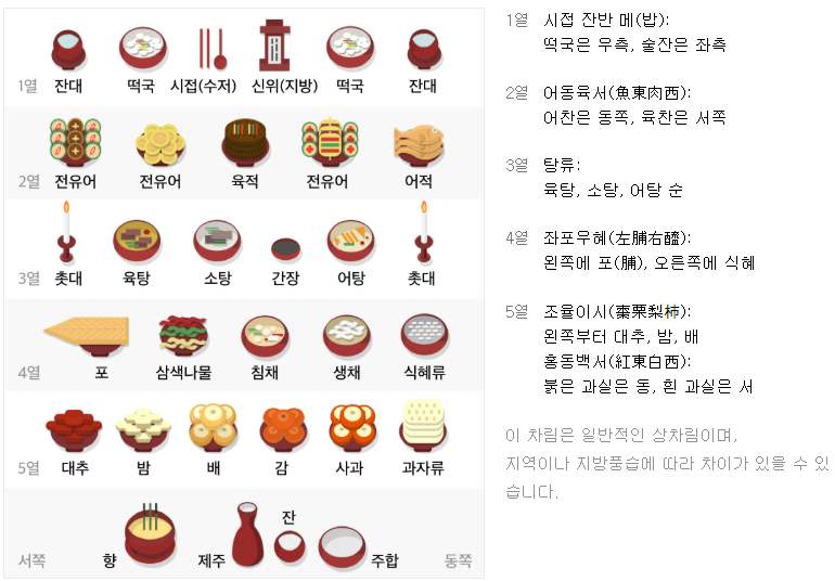 설 차례상 차림 2열 - 어동육서 - 어찬은 동쪽, 육찬은 서쪽
