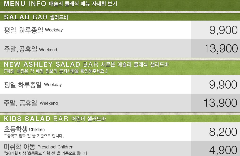 다양한 샐러드바를 합리적인 가격으로 즐길 수 있는 애슐리 가격 알아볼게요.